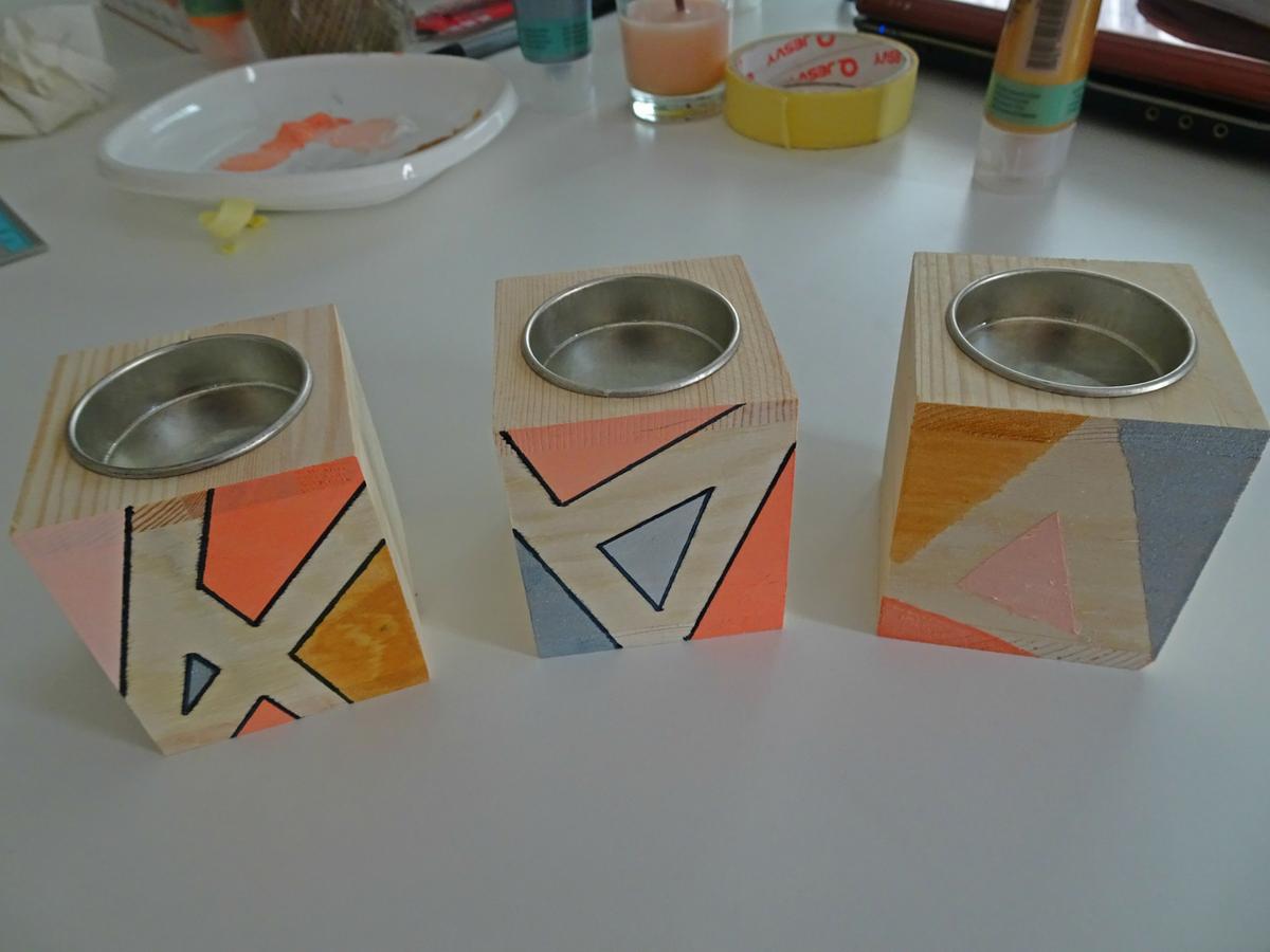 Pues inspirándome en esta técnica hoy os traigo un DIY súper sencillo de hacer, estos portavelas, yo lo hice ayer y en apenas un rato tuve éste y otro DIY (que os lo enseñare la semana que viene) y el resultado chulísimo.