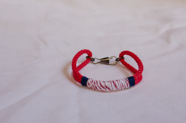 Cuerda. Algún trozo que tengas suelto, o como en la pulsera anterior, la de una bolsa irá bien