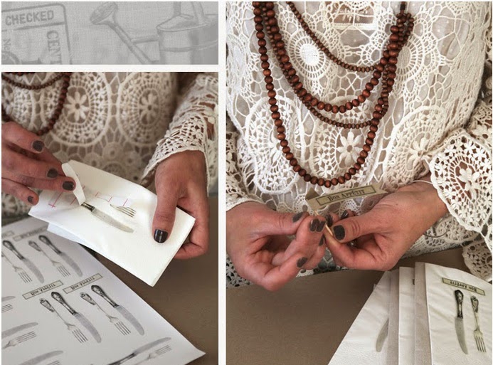 3.- Colocar los diseños al revés encima de la servilleta.