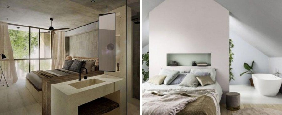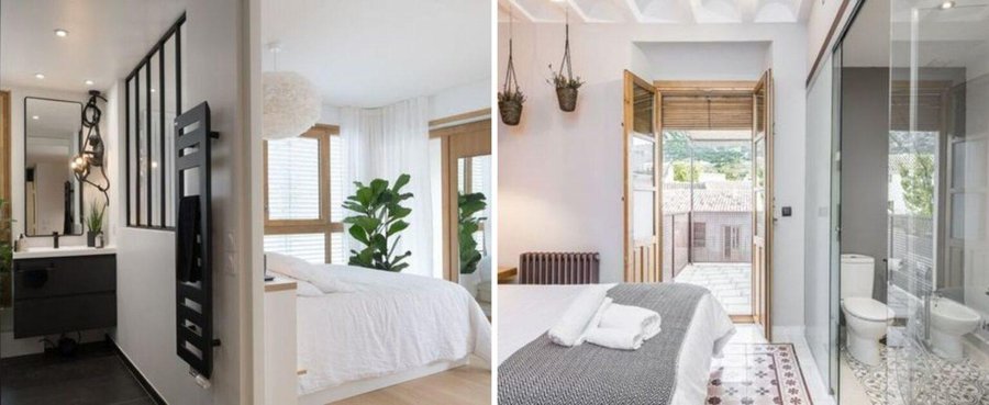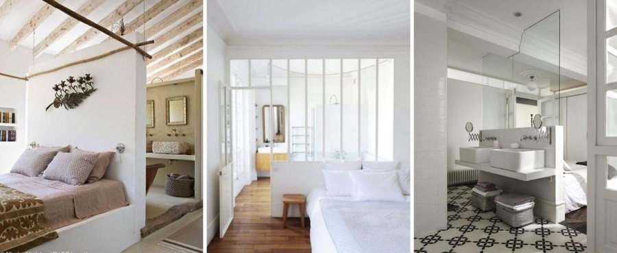 Los baños integrados completamente al dormitorio como una prolongación del mismo crean un espacio diáfano, se han convertido en una tendencia a la hora de distribuir viviendas de obra nueva. Este tipo de distribución te permite crear unos ambientes originales, con personalidad y que transmiten sensación de relax. Esta solución es perfecta si vives sola; ya que ello conlleva ciertos problemas de ruido, luminosidad y olores.