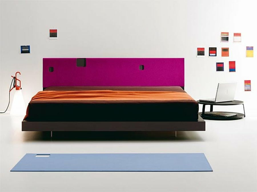 V tiene una doble ventaja. Por un lado, es una excelente cama con un estampado realmente curioso, pero además pone a tu disposición un contenedor que será estupendo para el almacenaje extra. Por último, otra sugerencia interesante en la que el color juega un papel de éxito. Es el modelo W, con un cabecero estampado a rayas rosas, granates, marrones y naranjas de diferente anchura.