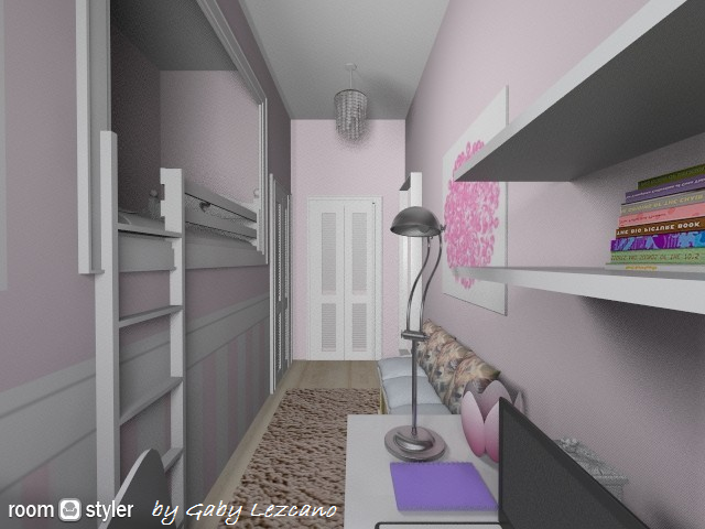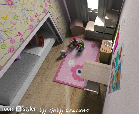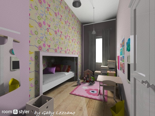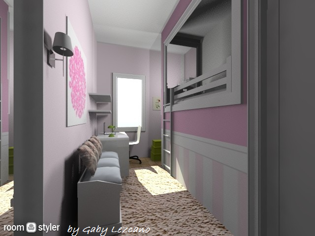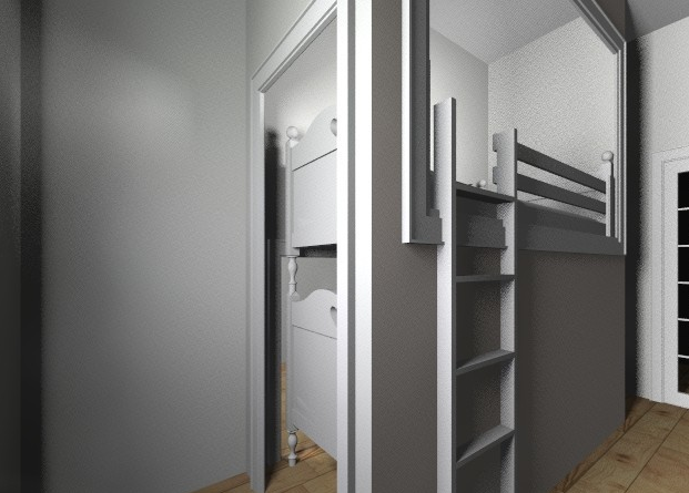 Tengo que admitir que esta idea no es propia, pero hace casi cuatro décadas siendo yo una niña, me pareció una idea genial y se la debo a mi tío Coco, hermano de mi padre. Se le ocurrió hacer dos habitaciones partiendo de una cama litera. Transformó un cuarto de 4.00 metros por 4.00 en dos cuartos para cada uno de mis primos, un niño y una niña. He modernizado un poco los materiales, ya que ahora los paneles o placas de pladur solucionan la vida y os he hecho unas imágnes con mi programa para que tengáis una idea de cómo lo hizo.