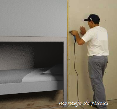 Como segundo paso, rodear la litera con placas de pladur, como vemos a continuación