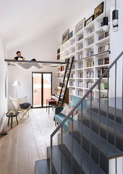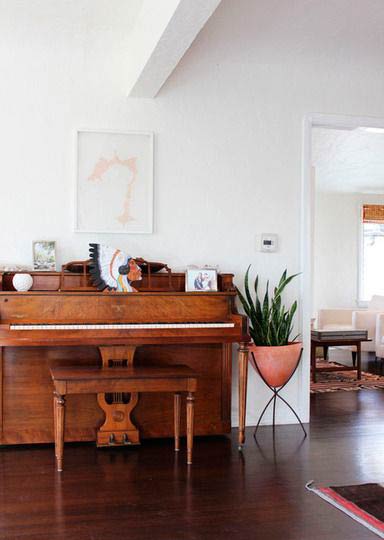 Y, ¿Qué me decís de la opción de esconderlo? Entre las baldas de una gran librería (busca el piano en la anteúltima foto) bien o pintando la pared del mismo tono que el piano como en la anterior. Sin duda creando un gran efecto.