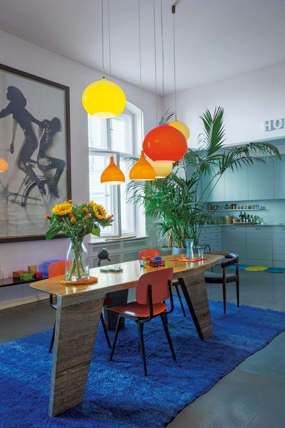 Puedes ir introduciendo el color naranja, con pequeños toques en diferentes lugares de la casa. Si tu hogar es más rural, esos toques de color, se los podrías dar, con flores, lámparas, sillas, cojines y demás, como te muestro en la siguiente fotografía.