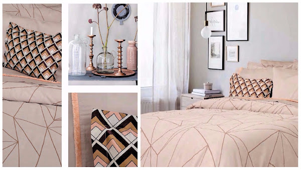 - GEOMÉTRICOS: estampados sencillos que se repiten, con una paleta de colores suaves, al igual que la anterior y con toques metálicos, ya sean oros o cobres... nos queda un estilo "nórdico" y un poco "art decó" al mismo tiempo.