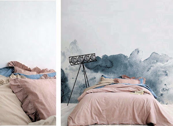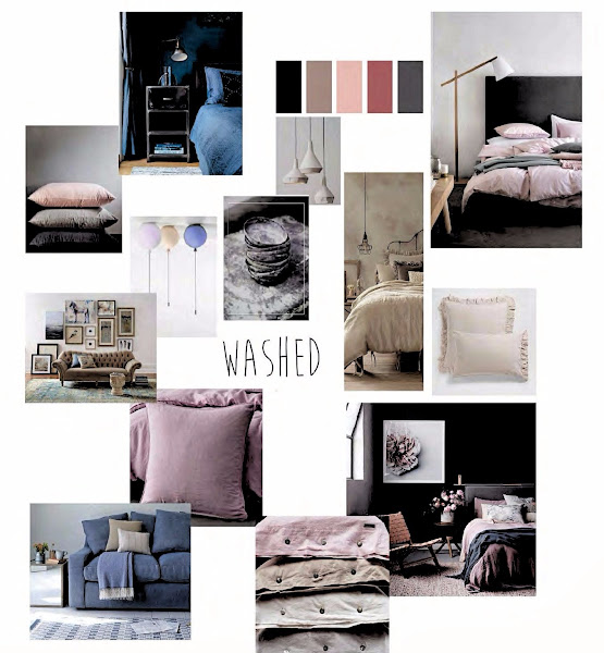 - COLORES PASTELES O WASHED; tonos suaves y tejidos desgastados, que son algodones 100% lavados para crear esos efectos. Su paleta de colores es perfecta para ambientes con aire "shabby chic" y al mismo tiempo en estas imágenes con paredes oscuras o con degradé y con mobiliario actual, la mezcla queda genial.