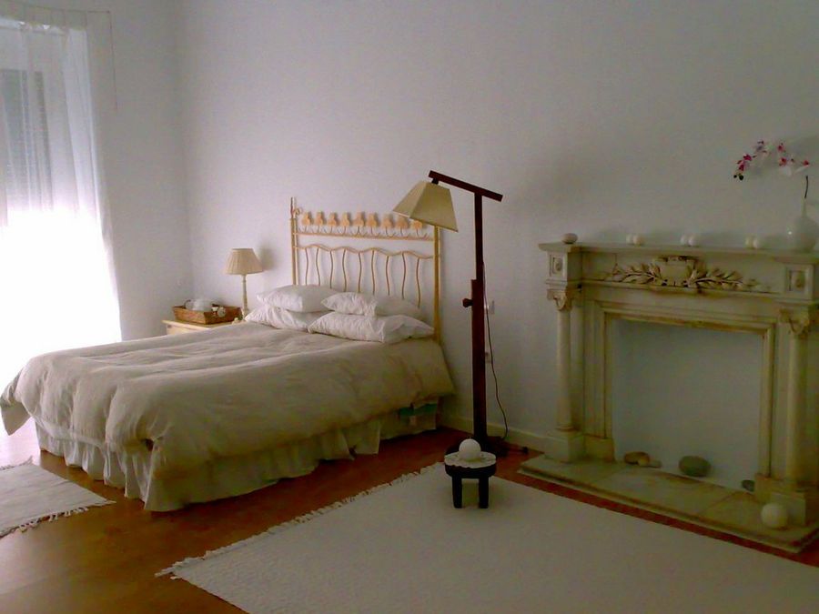 Por último el dormitorio fue la estancia que más expectación despertó en nuestro foro. Algunos detalles como el marco de la chimenea lo hacen único. De nuevo los materiales se mantienen para dar continuación a toda la decoración y se ha optado por textiles en blanco, también destaca el cabecero de forja y el armario de madera oscura con cristales para hacerlo más liviano. El vestidor tiene una decoración ecléctica que lo dan el contrapunto al dormitorio.