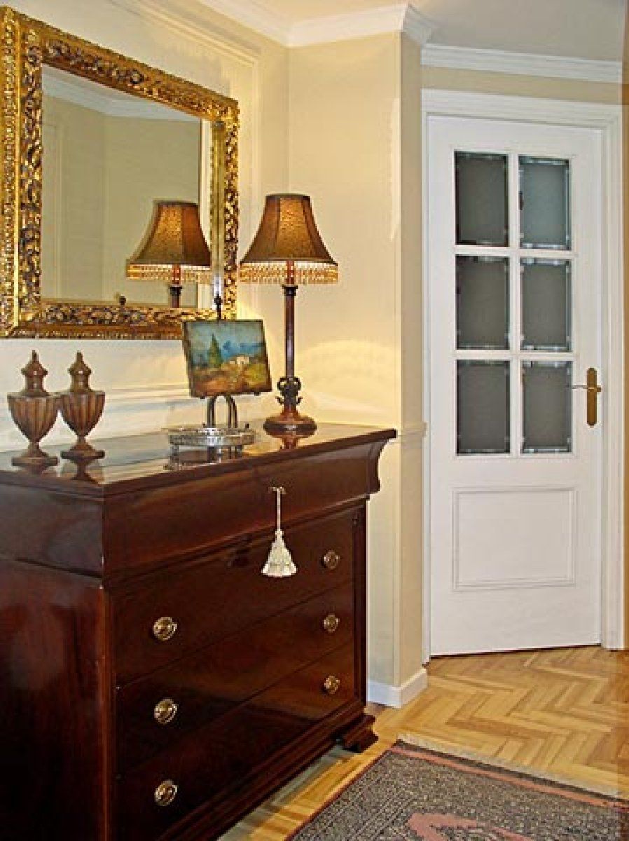Un recibidor clásico y señorial actúa de antesala de una casa con estilo neoclásico que la decoradora Silvia Carrión ha cuidado al detalle para crear hogar.