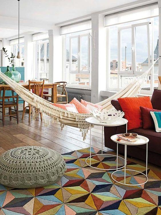 Algo muy divertido es mezclar distintas alfombras con distintas formas. Se puede poner una de base cuadrada o rectangular y superponer una redonda o asimétrica por encima. ¡Muy divertido!