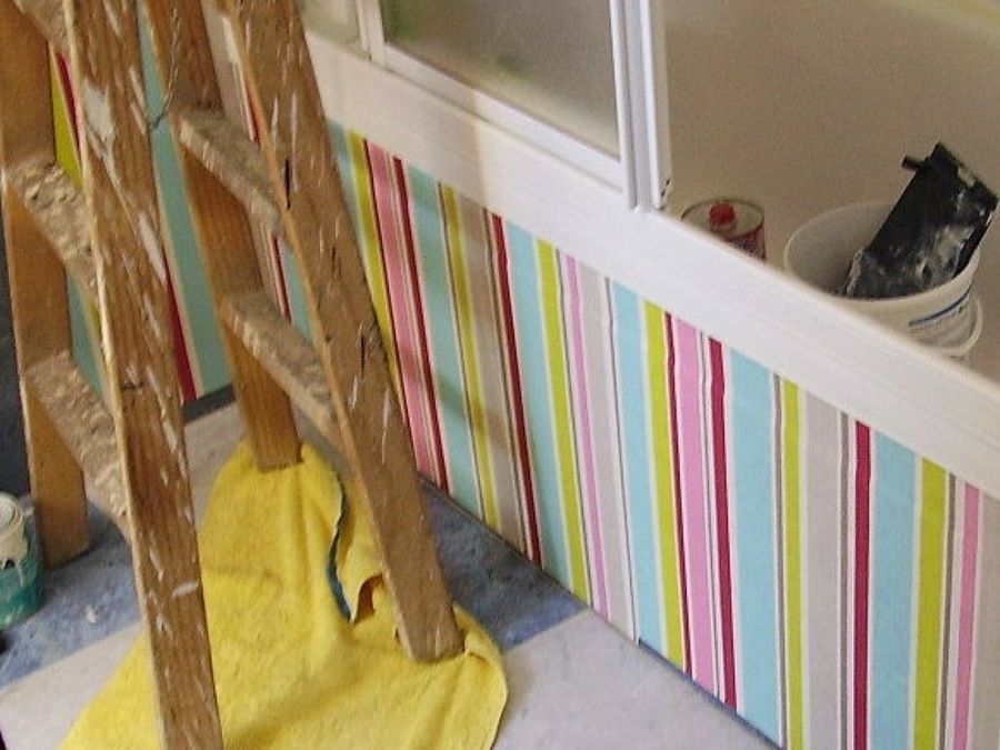 Muchos estamos de acuerdo que el mayor gasto viene del revestimiento del suelo. Belenperez tomo la decisión de poner panel pintado, para esto tenemos que asegurarnos que este papel resista la humedad y sea fácil de limpiar, con un diseño muy alegre. Antes de poner el papel debemos asegurarnos de que el azulejo queda completamente liso y darle una capa de emplaste para unificar y que las juntas no se noten.
