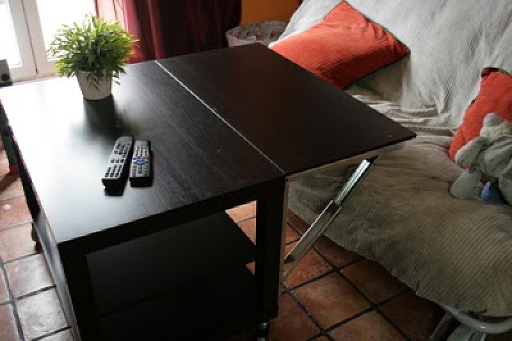 Otra opción es una mesa abatible, que nos ofrece ventajas como poder cenar sobre ella mas cómodamente. También es de facilísimo y nos dan más ideas en este enlace.