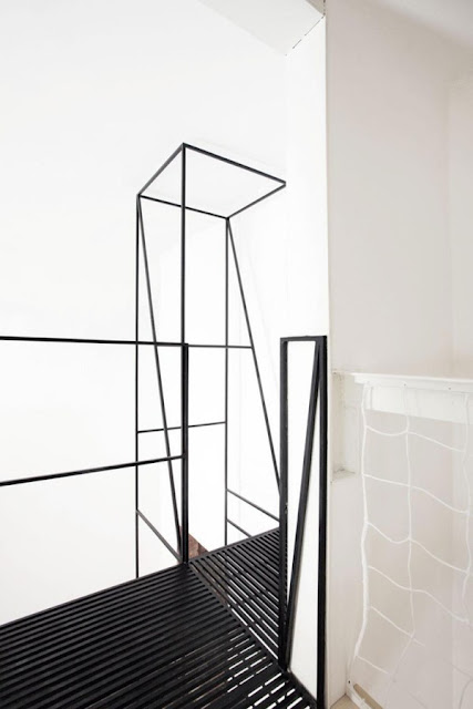 Solución ingeniosa y con mucho diseño , para este apartamento de 45 metros en un edificio de Milán del año 1900. El arquitecto Francesco Librizzi creo esta escalera de lineas puras y geométricas como si de una obra de arte se tratara.