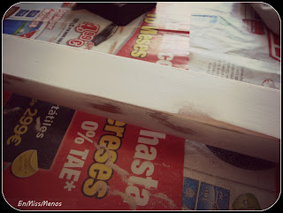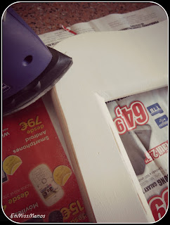 Después de lijar le dí dos capas de esmalte sintético blanco mate, y de nuevo a lijar, pero esta vez ya para darle el efecto envejecido, por los cantos y algunas zonas aparte.