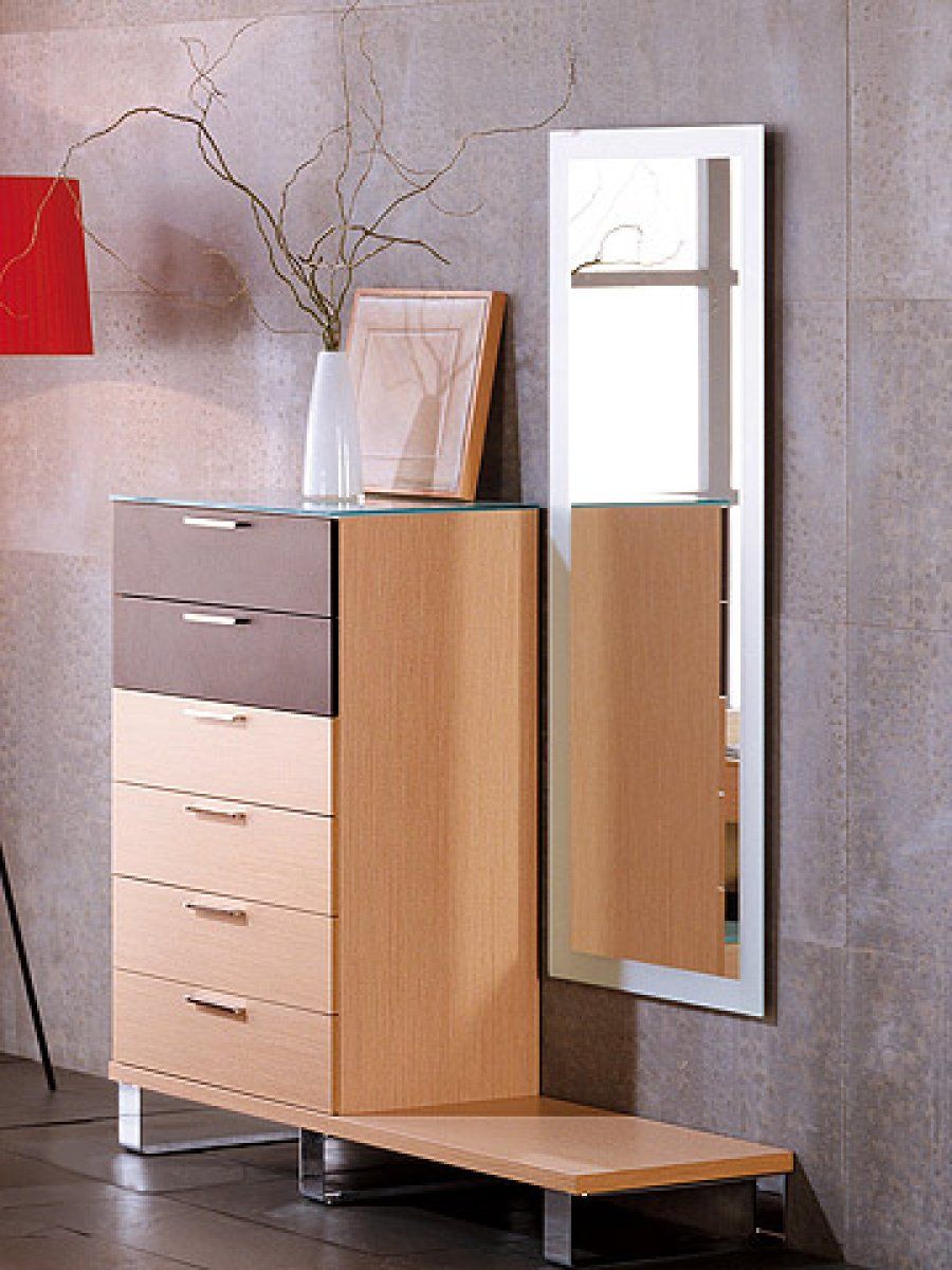 Junto a un pequeño módulo con cajones para que te organices, este espejo te permitirá verte casi por completo. Se trata de un modelo rectangular, de disposición vertical y con un diseño sencillo. Los bordes opacos son el detalle que más realza este espejo de Danona. En cuanto a los dos muebles que te presentamos para acompañar esta pieza, son de madera natural.