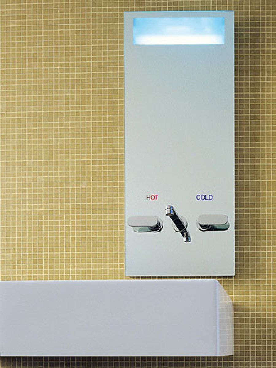 Tal y como indica su nombre, este modelo lleva serigrafiados las palabras ‘frío’ y ‘caliente’ en inglés, ya que en su superficie están instalados los grifos. Esta idea de Flaminia ha surgido con la intención de combinar espejo y grifería para crear un complemento muy original. Además, incorpora un foco en la parte superior que multiplica las aplicaciones de este elemento tan indispensable en el baño.