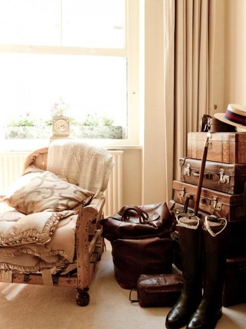 Desde hace tiempo se impuso la tendencia de utilizar maletas antiguas en la decoración. Actualmente me continua pareciendo un elemento fascinante y considero que es muy fácil integrarlo en cualquier estancia y además darle un uso práctico.