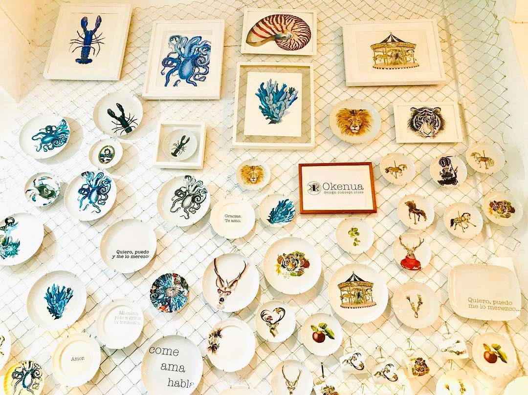 Si hablamos de tiendas de decoración la cosa cambia está claro, pero aún así necesito cierta estética y orden para que mi cerebro no entre en caos. Preferentemente me gustan las tiendas pequeñas de barrio, aquellas con encanto, como las que os traigo hoy. La decoración de algunas de ellas se basa en las propias piezas que están a la venta y son cambiantes conforme a la rotación del stock, es como si cada vez que entraras en la tienda encontraras un nuevo espacio. También están aquellas que aún siendo pequeñas, recurren a mobiliario realizado a medida intentando conseguir una temática concreta o la filosofía del negocio en cuestión. Otras se las ingenian para exponer sus productos mediante sistemas low cost, sin necesidad de gastar grandes fortunas en muebles y decoración, un claro ejemplo es la tienda Coattro Concept Store de Valencia, que con una simple malla metálica han mostrado todos los platos pintados a mano de la marca Okenua y bajo estos, unos palets sirven como estantes para colocar otros productos a la venta.