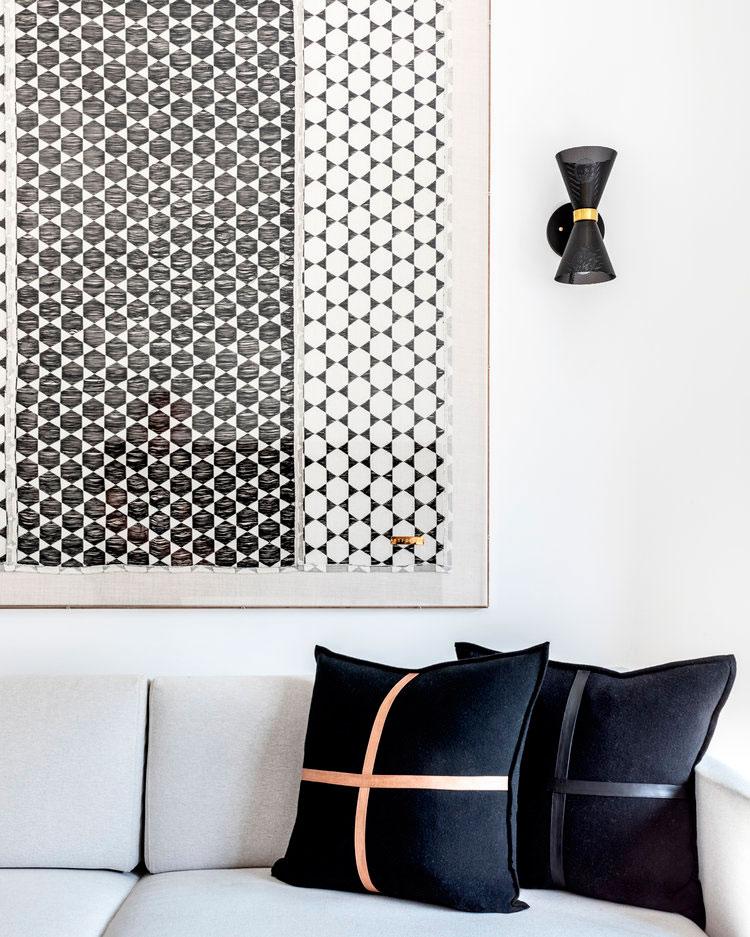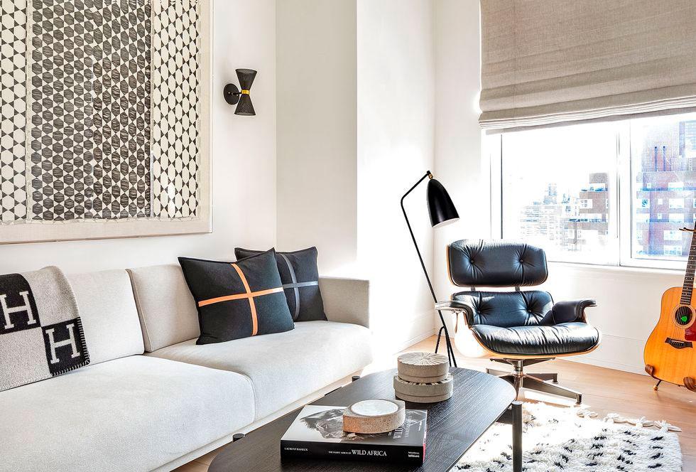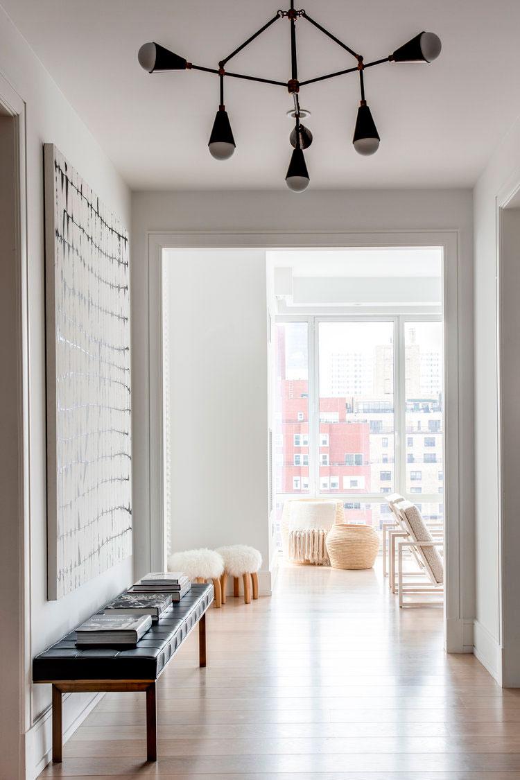 Tampoco quiero extenderme demasiado con el post de hoy, pero encontré este remanso de paz en Nueva York y me apetecía compartir. Quizás a muchos os falte color en este hogar y no digo que no pero sin embargo, no puedo dejar de pensar en la calma que me transmite la paleta de color beige, salpicado con toques de negro, que se repite por todo el apartamento. Orden, minimalismo, limpieza, luz, los elementos justos (ni más más ni menos), calidez a su vez con toques de madera que siempre funcionan, elegancia en el negro y en las pinceladas de dorado en los apliques u otras luminarias, y por último, el toque tierno y nada caótico de las habitaciones infantiles. Toda esta casa me transmite mucha serenidad. Aunque mi espacio favorito es el recibidor y tan sólo consiste en un cuadro XXL y un banco de cuero, esto me confirma que la mayoría de las veces, menos es más y si hay arte de por medio haciendo de protagonista, no es necesario volverse loco buscando más complementos.