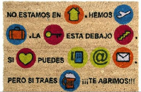 Ya casi para acabar, otro felpudo que tiene bastante humor, y juega con la típica frase de "Cuidado con el perro", pero la invierte de la siguiente forma: "Olvide el perro, CUIDADO CON LOS NIÑOS". Se vende en K'Arte Tengo.