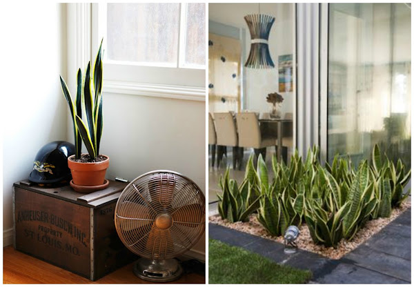 Se trata de la Sanseviera, Espada de San Jorge o Lengua de Suegra. Cierto que con ese nombre no sea muy atrayente ¿quien quiere una Lengua de Suegra en su casa? pero lo cierto es que es una planta atractiva que queda bien en cualquier rincón. Atenta si eres mataplantas que según he leído es de las plantas más resistentes que hay. Dicen por ahí que tienen fama de indestructibles, aguanta el ambiente seco y caliente de las habitaciones, luz pobre y los olvidos de riego, ¡vamos, que además de ser muy decorativa es apta para cualquier manazas! Otro dato que me ha parecido curioso es que al contrario de casi todas las plantas, esta planta transforma el dióxido de carbono en oxigeno durante la noche por lo que es apta para dormitorios. Poco más se le puede pedir a una planta. Vamos a ver imágenes.