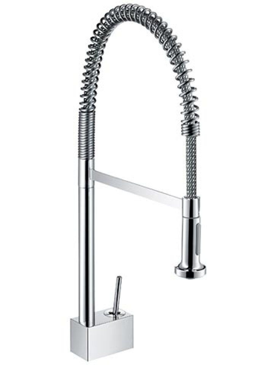 La línea Axor de Hansgrohe reúne las aportaciones de diseñadores de prestigio. Antonio Citterio es el responsable de estos dos modelos de gran ergonomía y enorme belleza. La palanca situada en el lateral es el denominador común de estos ejemplos tan sumamente esbeltos con los que tu cocina se acerca a los ambientes gastronómicos profesionales.