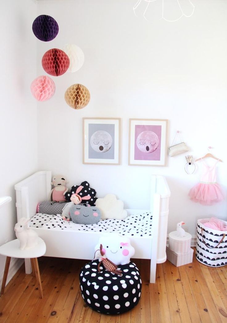 Blanco y negro como base. Aunque casi todos tengamos la idea de usar rosa para niñas y azules para niños a priori, para conseguir una habitación infantil nórdica siempre se piensa en dos neutros: El blanco y el negro que puede ir acompañado de toques de grises y puntos de color, pero sólo en algunos detalles, como rosas, rojos, amarillos, naranjas, azules o verdes.