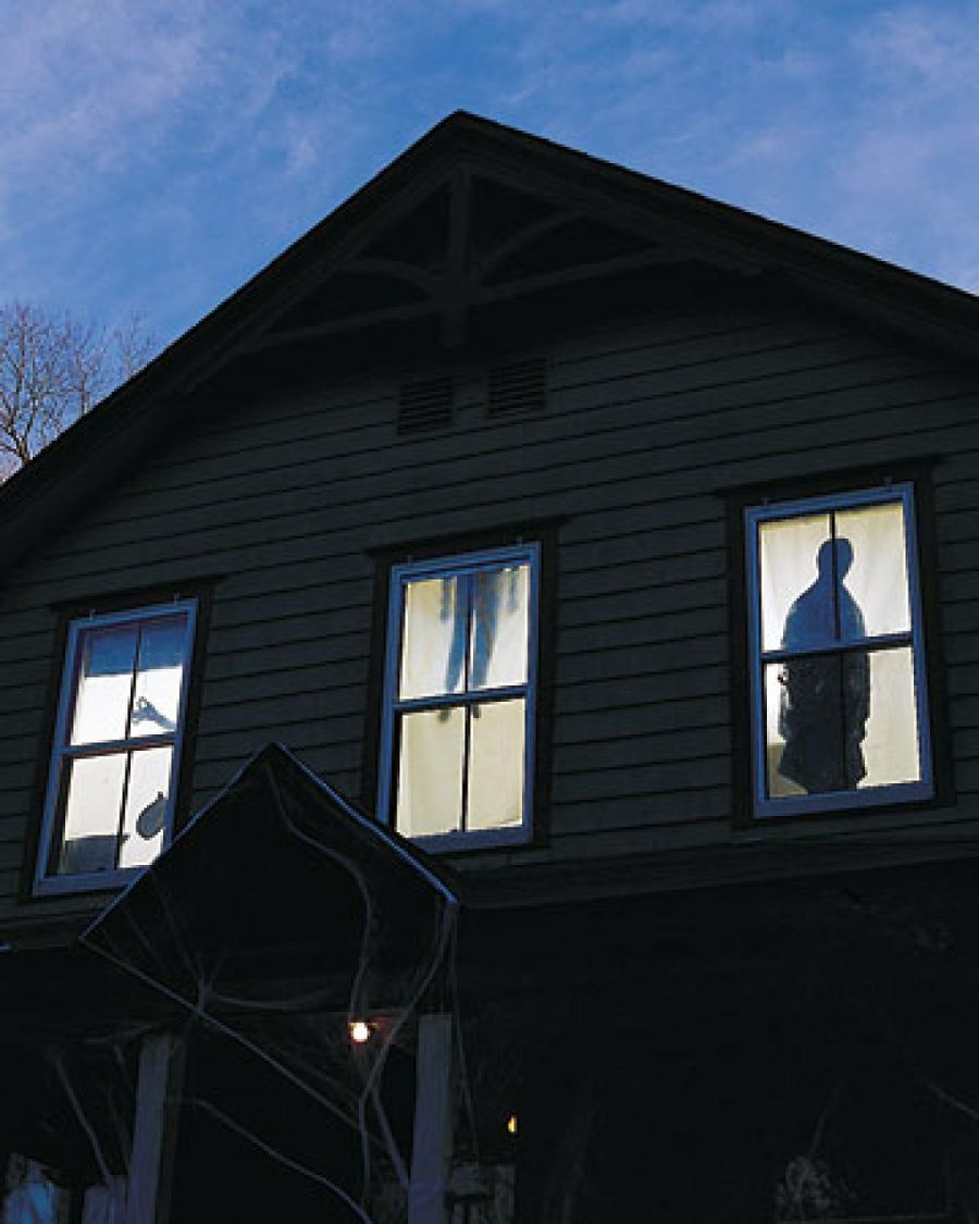 Por último, si queremos que nuestra fiesta dé miedo desde el comienzo podemos dibujar en cartulinas negras figuras de fantasmas o zombies y ponerlas en las ventanas. Como veis cuando encendamos la luz el efecto es espeluznante.