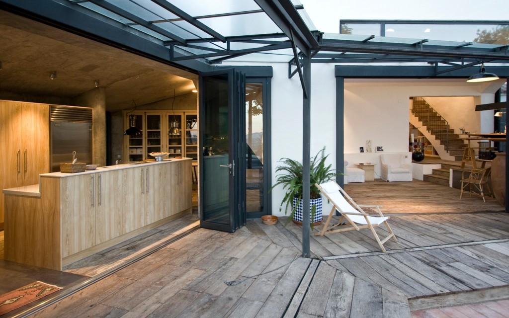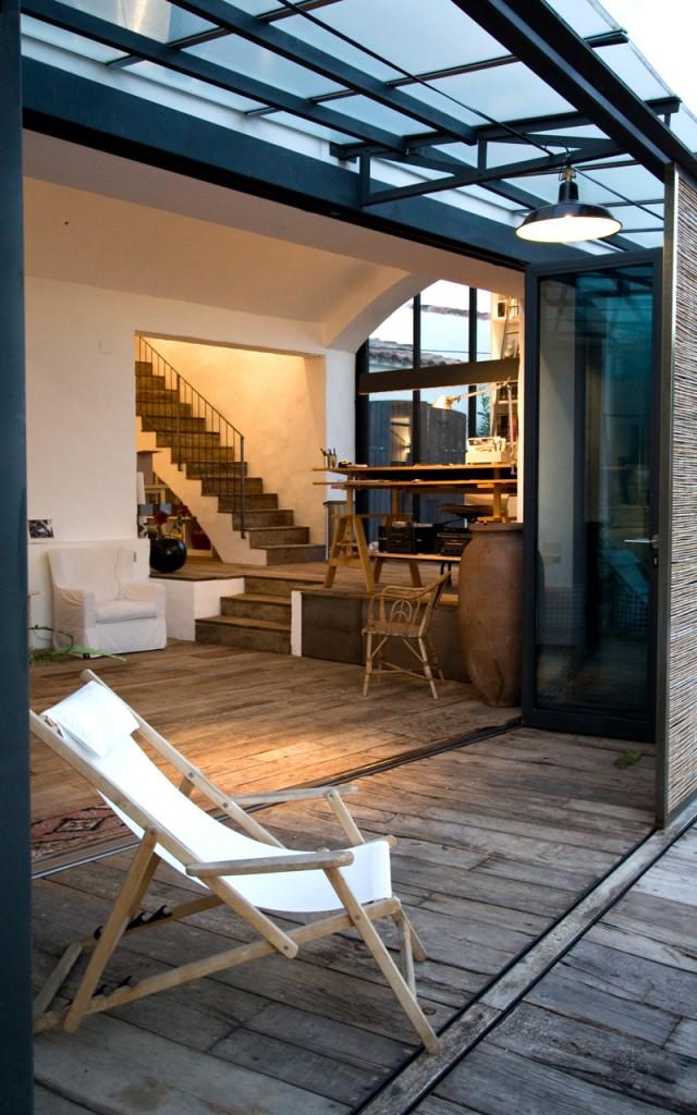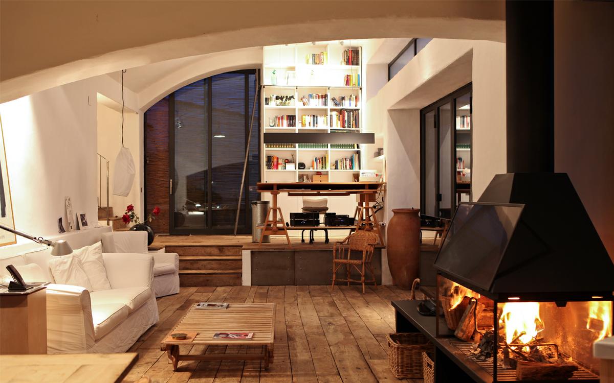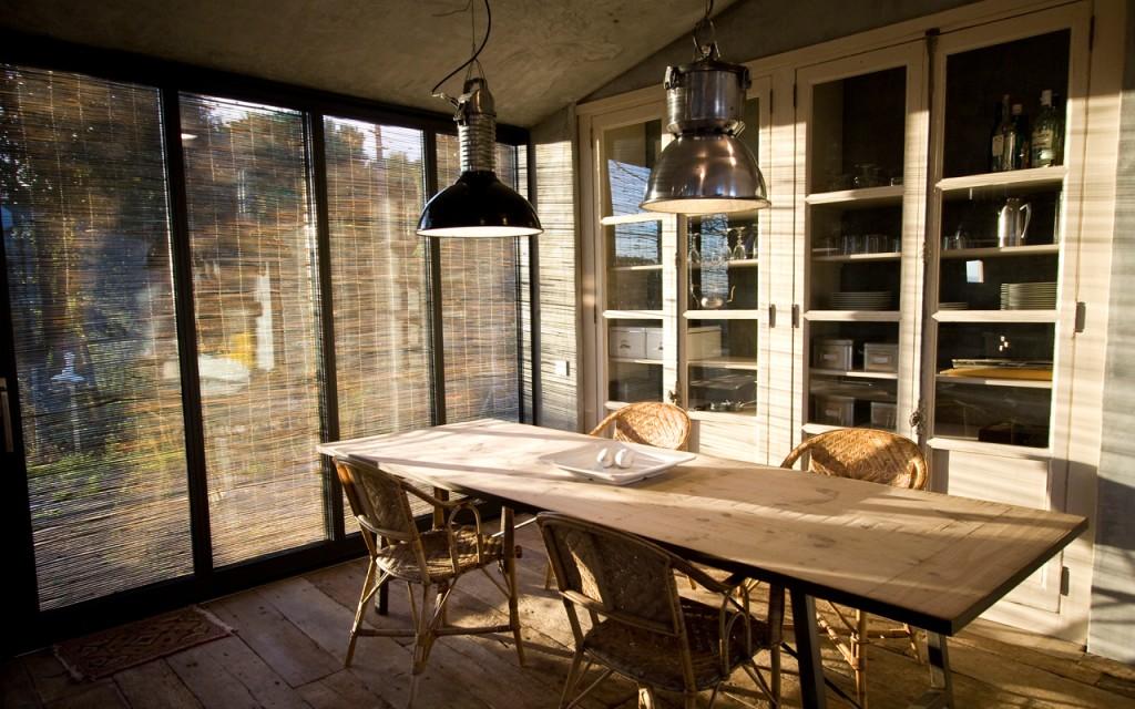 Para garantizar la entrada de luz, se practican grandes aberturas en las fachadas Este, Sur y Oeste de la masía, con carpinterías correderas o en acordeón, que quedan totalmente abiertas, y permiten así una óptima relación entre interior y exterior. Esta relación queda tamizada en la fachada Sur, por un porche-galería, que sirve de conexión/protección entre estos dos espacios.