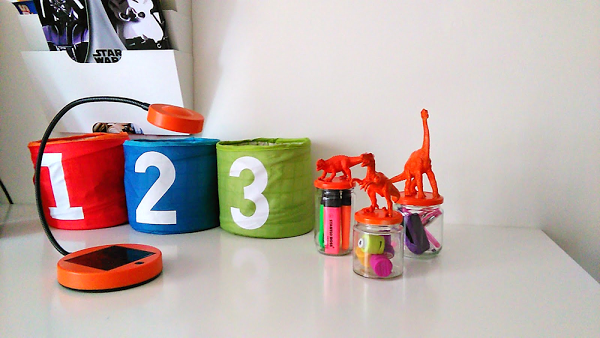 3. En el cuarto de los niños también son muy útiles los botes, nuestra blogger Ayuda a decorar nos mostró cómo podemos personalizarlos con figuritas y un poco de pintura en spray.