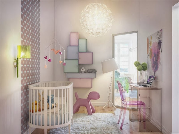 Mirando una revista, me encontré con una cuna preciosa, de diseño italiano, y enseguida me vino a la imaginación la habitación de un bebé niño.