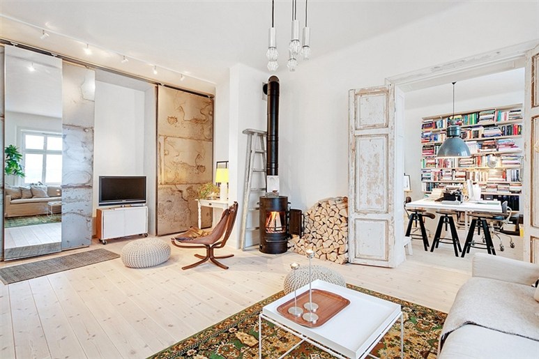 Una mezcla sin miedo a la unión de retro y minimal, de industrial y vintage. Un lugar donde las estancias se conciben como una, y dejan ver la luz, de forma continua. La forma en que su dueña ha sabido mezclar y destacar los rincones y elementos de mobiliario antiguos le da mucha personalidad. De forma sutil, se disimula el mobiliario de cocina, dejando como protagonista, piezas como la mesa rústica, o la zona de cocción en acero inoxidable.