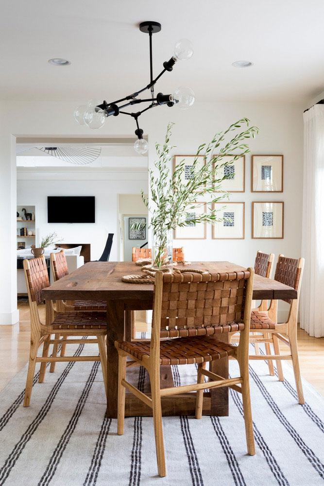 Cuenta Joyce Pickens que una manera de aportar modernidad sin luchar contra la arquitectura tradicional, es mediante la iluminación. Dice que ni siquiera fue una elección consciente, que se guió por sentimientos (parece que es de los míos). Añade que buscaba el proyecto perfecto para incluir este tipo de lámparas, que prefería elegir un mobiliario atemporal y clásico y divertirse sobre todo con las luminarias y las sillas. En el comedor lámpara Seven Globe de France and Son y sillas Woven Leather de Wisteria.