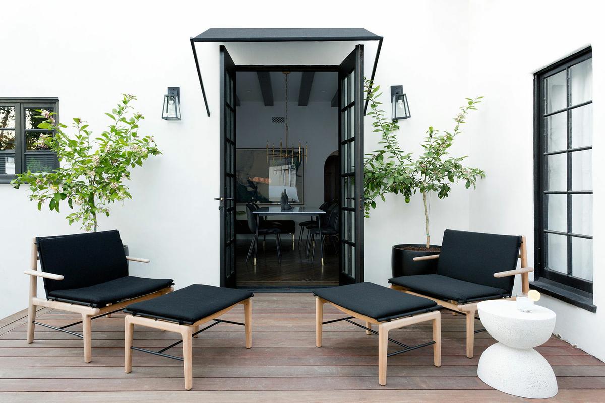 Por cierto que si el interior es bonito, el exterior no se queda atrás. Precisamente lo que más me gusta es su sencillez, una vez más las piezas justas pero muy bien elegidas ¡Cómo es esa zona de relax! Butacas de corte nórdico con sus correspondientes reposapiés, allí quisiera yo pasar las horas muertas…