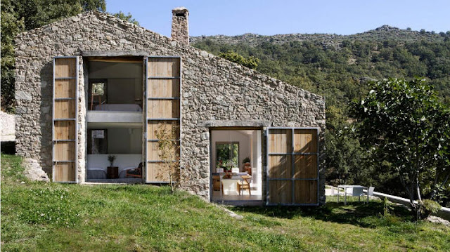 De esta casa de campo en Cáceres desde luego me gusta todo, pero su exterior es lo que más me llama la atención sus grandísimos ventanales con esas puertas de madera entre industriales y rusticas ... bueno aunque es ya casi famosa, aquí la quiero enseñar para que mis dos queridas hermanas se inspiren.