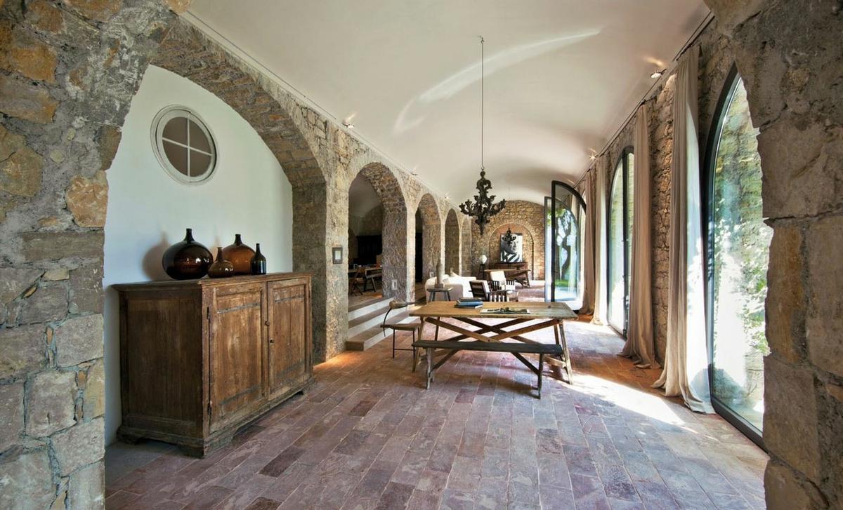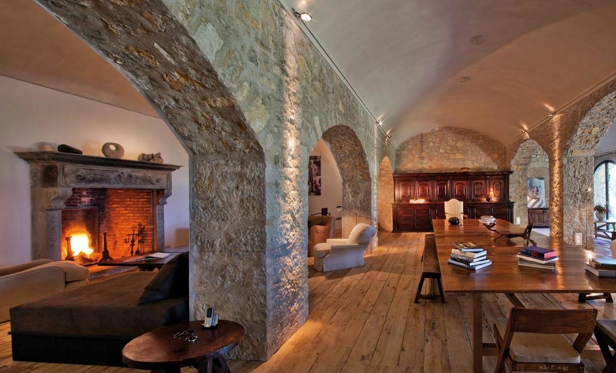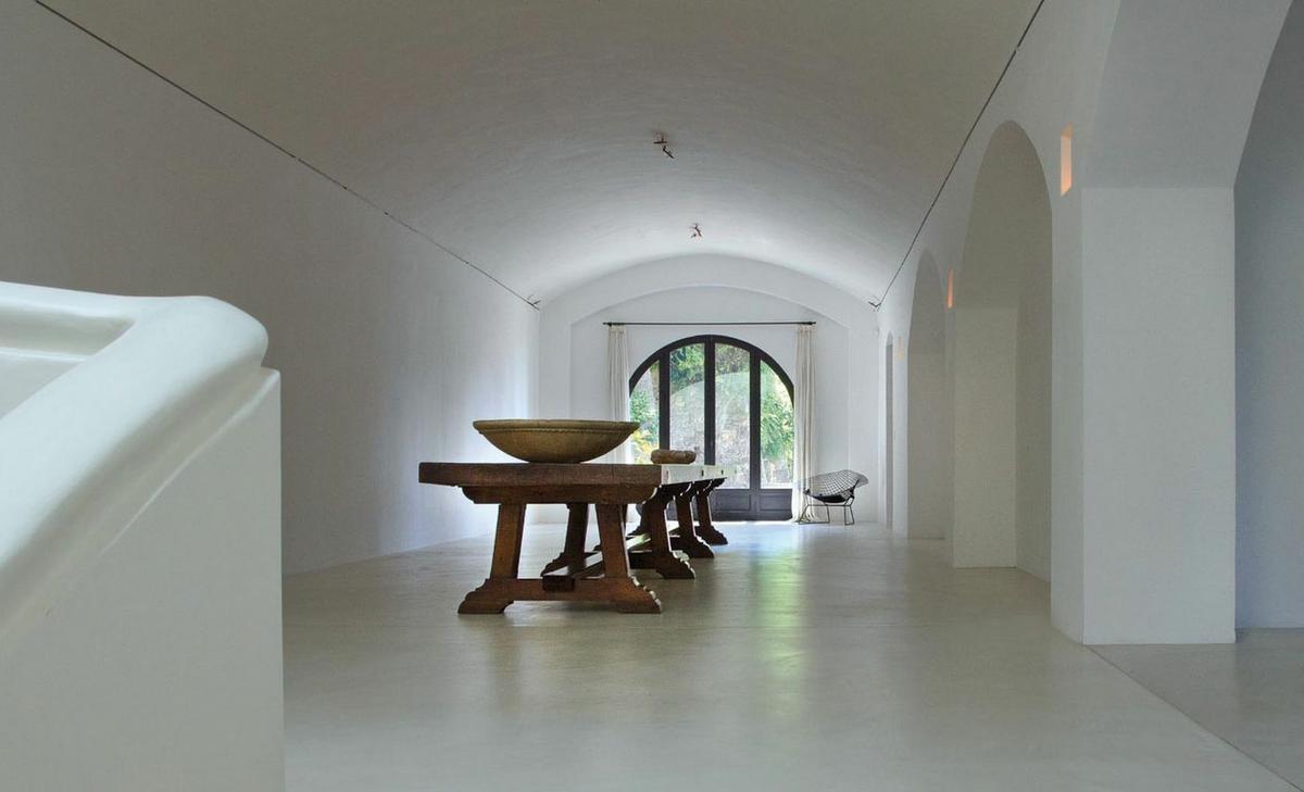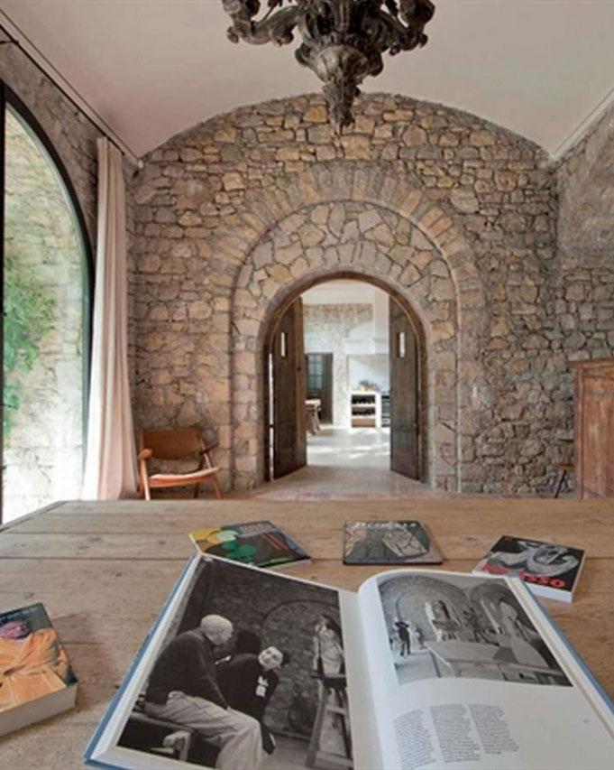 La casa principal es una construcción del siglo XX que ha sufrido varias remodelaciones, desde una ampliación cuando vivía Picasso, otra en 1995 y las últimas obras realizadas en 2007 y 2010. Como veréis en las imágenes sorprende por su mampostería de piedra tradicional, sus altísimos techos, elementos auténticos con acabados y equipamientos de lujo. En esta finca aislada Picasso encontró el retiro perfecto y la tranquilidad para crear, la casa contenía cientos de pinturas, dibujos, grabados y esculturas. Para poder trabajar sin distracción agregó un estudio con terraza a las 24 habitaciones que por entonces tenía la vivienda.