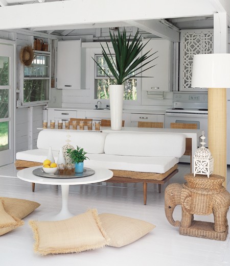 Una casa de madera también puede ser el escenario perfecto para dar ese toque árabe que tanto nos fascina. Acostumbrados a encontrarnos con este tipo de decoración en espacios rurales, agradecemos enormemente otras muchas aportaciones y combinaciones que quedan igual o mejor que a las que ya estamos acostumbrados. En este caso, un pequeño bungalow de madera, deja entrever el encanto de las fibras naturales, los colores neutros y los detalles marroquíes con líneas sencillas y depuradas. La simplicidad en sus objetos se convierten en grandes aliados, piezas escasas pero bien seleccionadas, crean una atmósfera de frescura y una sensación muy confortable. No tenemos más que ver el maravilloso enclave en el que está situada la casa, rodeada de un lago. Mi lugar favorito es la ducha, exenta a la vivienda e integrada en la naturaleza casi por completo. ¿No sería maravilloso poder refrescarnos en ella?