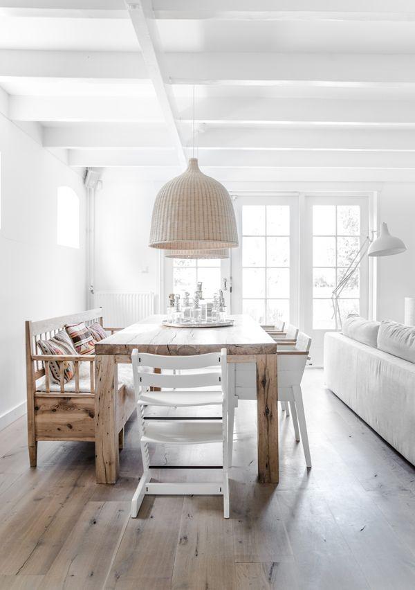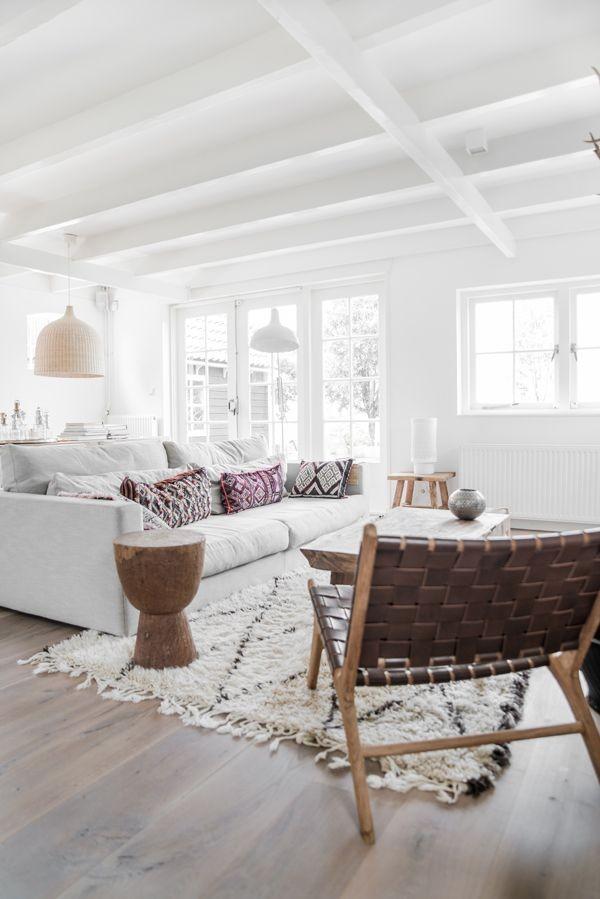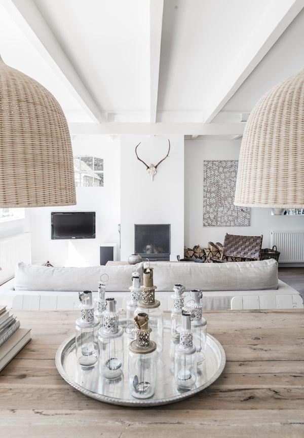 Volvemos a tener el blanco como color principal y madera mucha madera. El techo es de vigas que han sido pintadas. Su estilo está entre lo rústico y lo étnico gracias a los textiles o los candelabros que decoran.