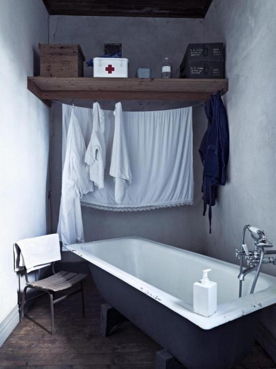 Simples bombillas iluminan las diferentes estancias, dónde sólo se ha añadido una lámpara de pie industrial en el salón. El resultado es de máxima simpleza y austeridad decorativa gracias al mobiliario recuperado, del que destacan las camas metálicas, la bañera, las antiguas maletas y cajas de fruta, la chimenea, el viejo horno o las tarros y botellas reconvertidos en hermosos jarrones.