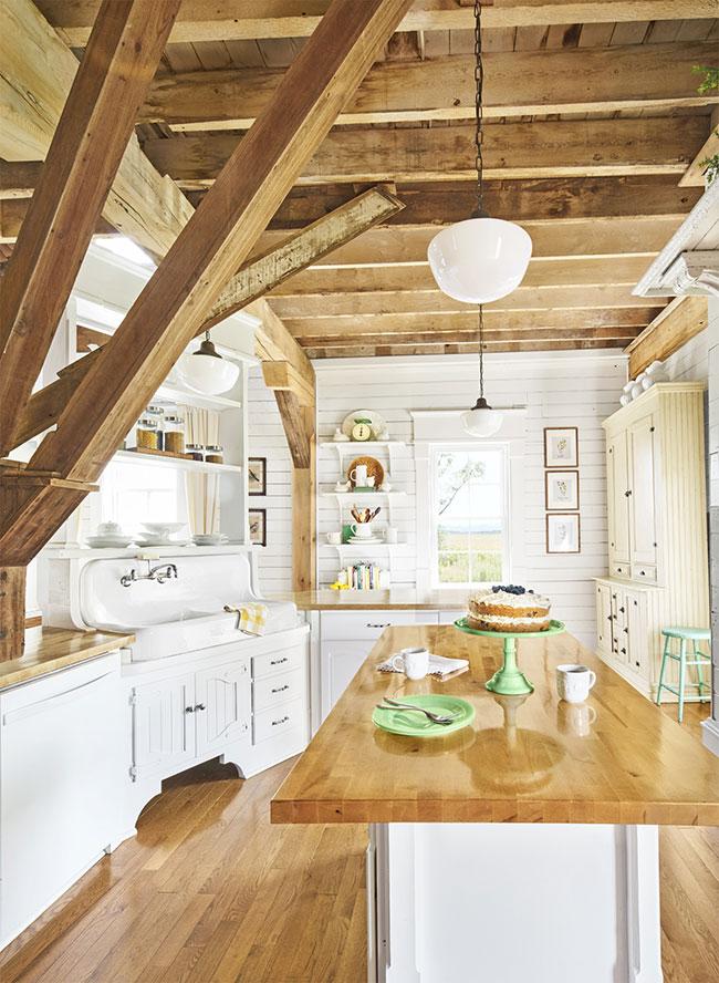 Estamos enamorados de esta cocina; desde las vigas de madera, pasando por el fregadero antiguo y por supuesto las encimeras de madera. Nos encanta cómo queda este material en cocinas de todos los estilos. Sin duda una tendencia con fuerza.