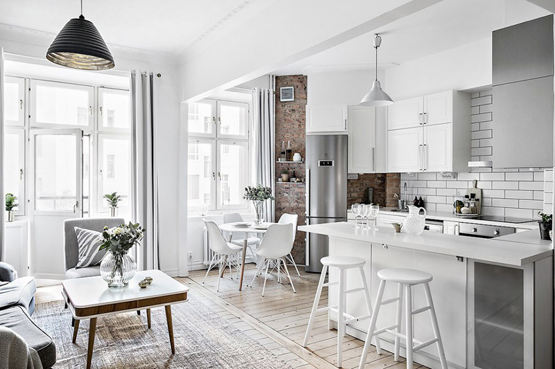 Este apartamento finlandes es clásico del estilo nórdico con la típica paleta de color blanco, toques en negro y madera, pero con una decoración con estilo y verdaderas zonas donde coger mucha inspiración por ser atrevido en su tamaño pero a la vez funcional, todo a la mano pero con ese orden necesario.