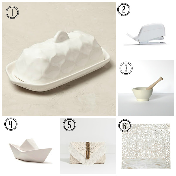 1. Mantequera 2. Grapadora 3. Mortero 4. Servilletero 5. Bolso 6. Cabecero