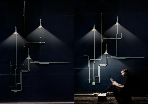 Como si se tratara de una instalación cualquiera , este sistema de iluminación , se llama Light Forest y sirve tanto para la pared como para el techo, puedes elegir el color y colocarlo horizontal o verticalmente . Elegir el numero de apliques , la altura... en fin todo , si quieres hasta puedes crear un plano de tu zona .........me resulta original.