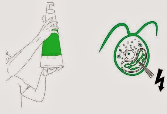 - Pues en ningún lao! porque como te comentábamos, basa su funcionamiento en la fotosíntesis de las algas, con lo que se puede utilizar en cualquier parte, aunque no haya electricidad! Mira mira... verás que interesante invento...