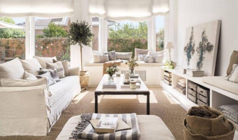 En cuanto a la decoración un lienzo en blanco es el encargado de potenciar la luz natural de la nueva vivienda. Esta junto a los muebles, acabados en madera natural y las fibras naturales; ayudan añadir un plus de confort y calidez al hogar. Los colores (todos ellos en una gama neutra y natural) se añaden en los textiles (cojines, plaids, caminos de mesa o ropa de cama).