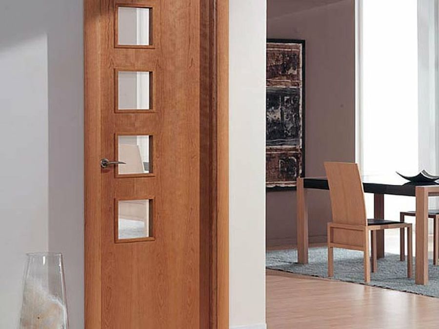 Las puertas con ventanas tienen una enorme ventaja: son capaces de aprovechar la luz del exterior, ampliando el espacio y descargando volúmenes. Te descubrimos varias opciones en función de la madera empleada. La primera está realiza en cerezo y destila naturalidad. Las imágenes siguientes presentan dos modelos acabados con malla central horizontal; una es de cerezo con junquillos cromados y la otra es de haya con junquillos de acero.