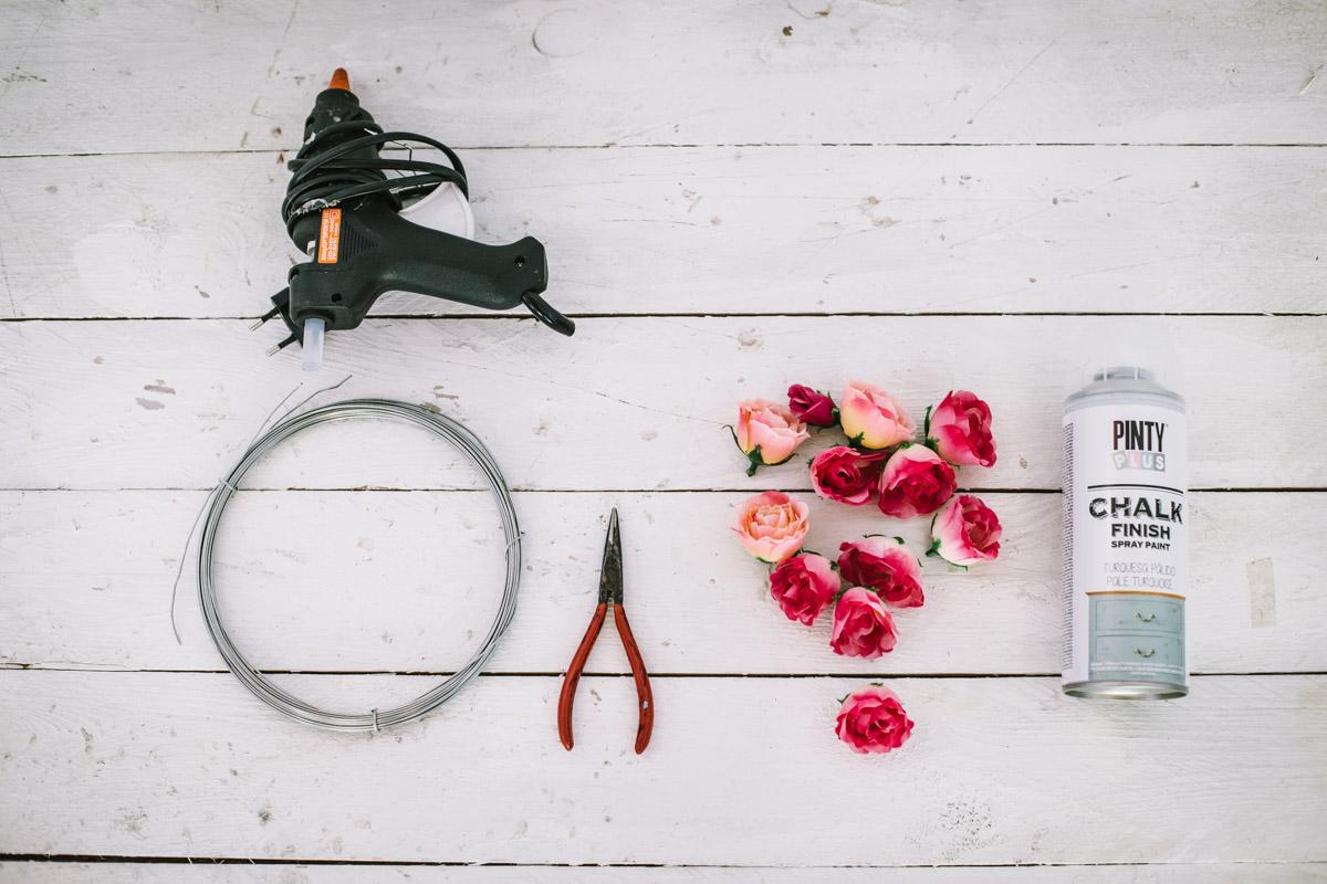 Materiales: Alicates, pintura, pistola de silicona, alambre y flores. Son muy pocos y sencillos materiales.