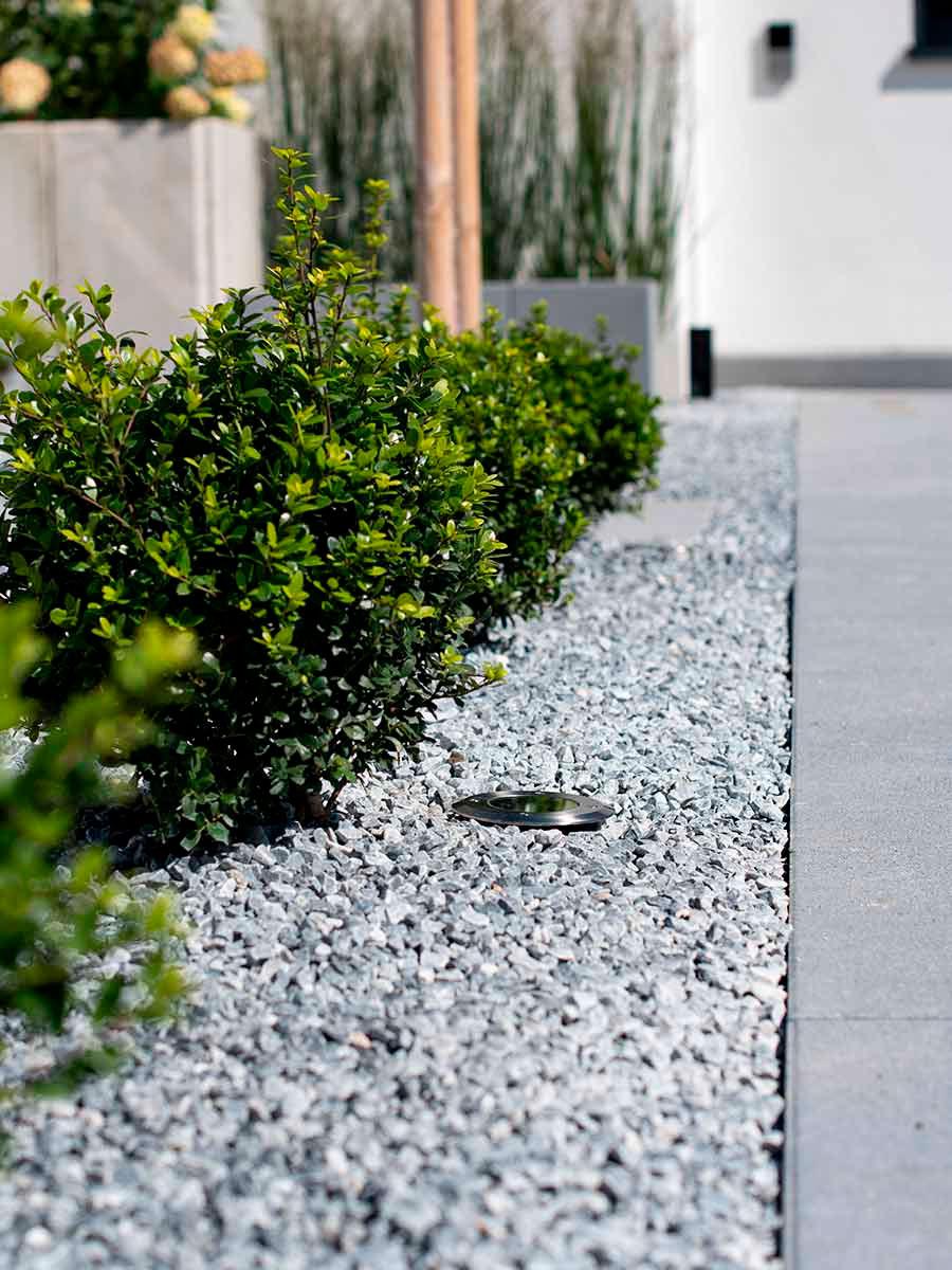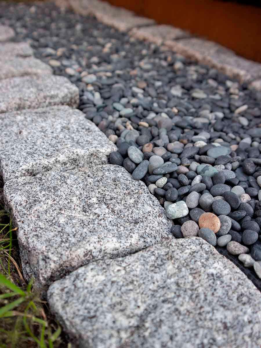 Si nos interesa crear un jardín con contrastes, nada mejor que combinar distintos materiales y para ello, existen materiales como las borduras que delimitan los espacios creando una separación entre, por ejemplo, zonas de césped con otras de canto rodado. Vendrían a ser como las pequeñas vallas de madera que antaño se ponían para delimitar zonas, pero hablamos de una versión más moderna. Podemos encontrar bordes de acero corten, de metal, también en rollos flexibles (permitiendo así, hacer curvas) y disponemos de distintas alturas dependiendo de la estética que queramos conseguir. Otra manera de separar espacios, crear pavimentos, incluso se utilizan para la construcción de aparcamientos, es utilizar adoquines de granito que, aunque no son tan económicos, no hay duda de su durabilidad.