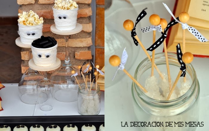 Con unas tarrinas de helado y vendas, conseguimos hacer estos cubiletes tan divertidos para las palomitas y para el regaliz. En el próximo post, os mostraré el tutorial de como hacerlos.
