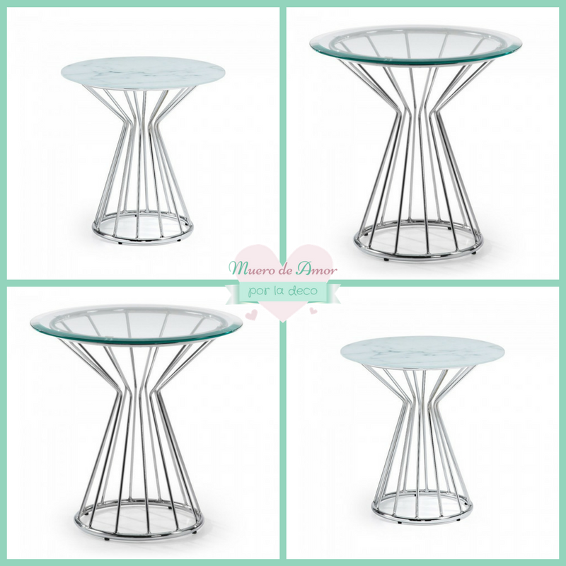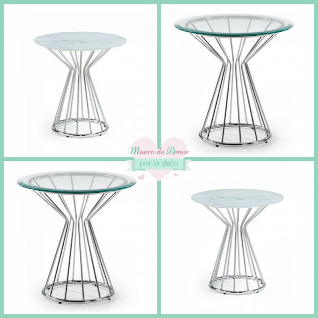 Siguiendo con las mesitas metálicas, pero esta vez, con un toque más femenino y chic… Tenemos éstas otras: